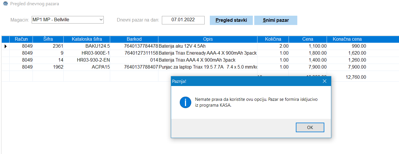Formiranje dnevnog pazara i dnevne prodaje komisiona iz backoffice modula