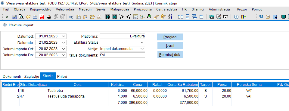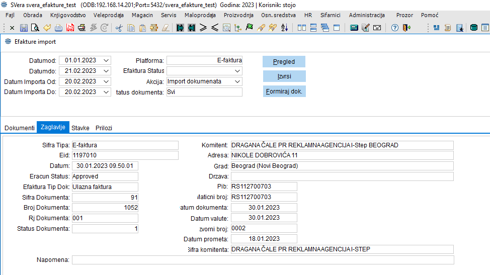 - Pregled importovanih faktura sa prilozima