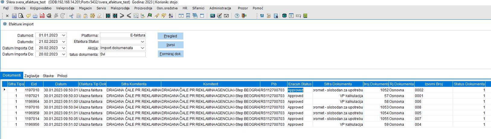 Posle nekoliko sekundi se na ekranu pojavljuje lista sa importovanim dobumentima sa SEF-a na Tab-u Dokumenti.