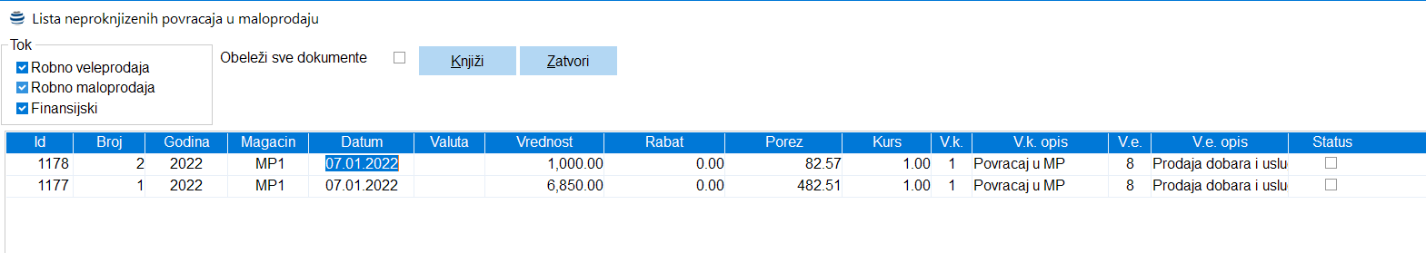 Da bi se podaci ispravno upisali u KEP knjigu neophodno je nakon fiskalizacija proknjižiti povraćaje u maloprodaju a najkasnije do kraja dana. Knjiženje se vrši kroz stavku menija Maloprodaja – Povraćaj od kupca – Knjiženje ili aktiviranjem opcije knjiži dokument u samoj masci za unos dokumenta (objašnjeno u osnovnim operacijama nad dokumentima).