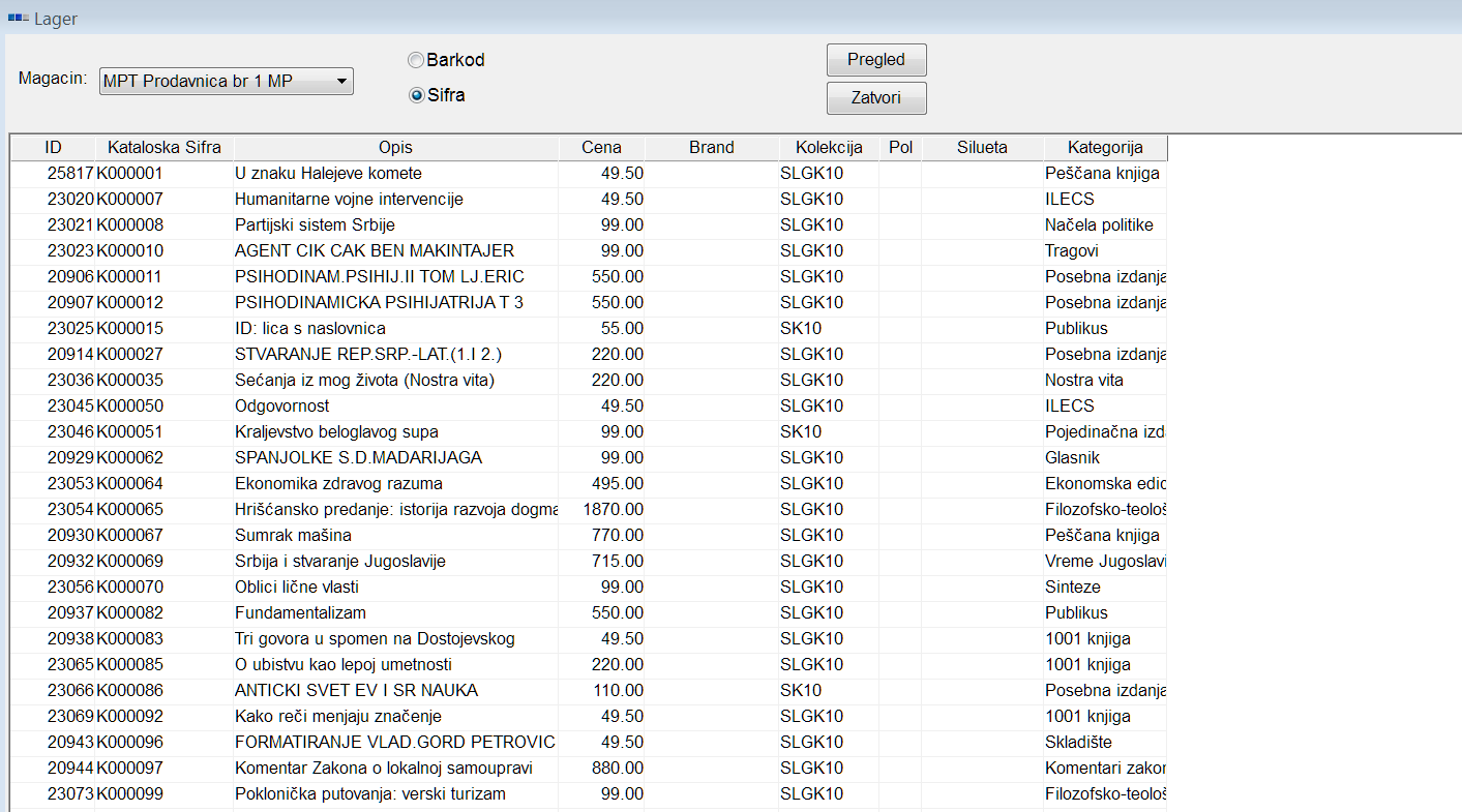Pre štampanja popisne liste ista se može urediti sortiranjem po raspoloživim kolonama ili po određenim filterima, npr. ako popisujemo samo određenu vrstu robe. Nakon obrade aktiviranjem opcije Pregled pred štampu, dobijamo oblik za štampu popisne liste.