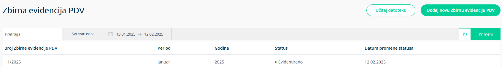 Provera zbirne evidencije na SEF-u. Na osnovu jedinistvenog indentifikatora koja se upiše u polje broj sef prijave možemo na SEF-u pronaći Zbirnu evidenciju koja je nastala slanjem iz Svere.
