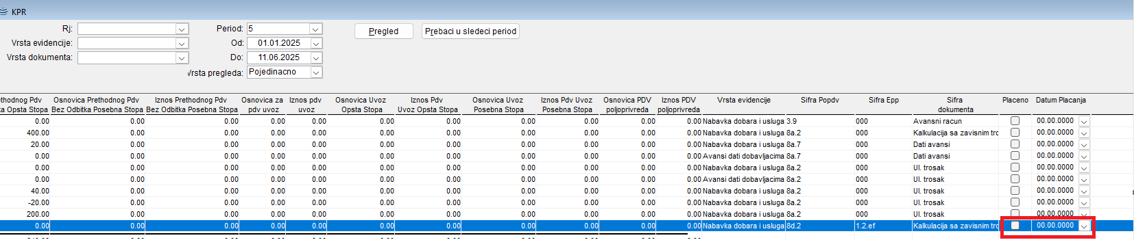 Sistem za elektronsko fakturisanje (SEF)Evidencija prethodnog poreza (EPP) Carina Da bi PDV prilikom uvoza ušao u EPP evidenciju neophodno je u KPR-u popuniti datum plaćanja i check polje plaćeno.
