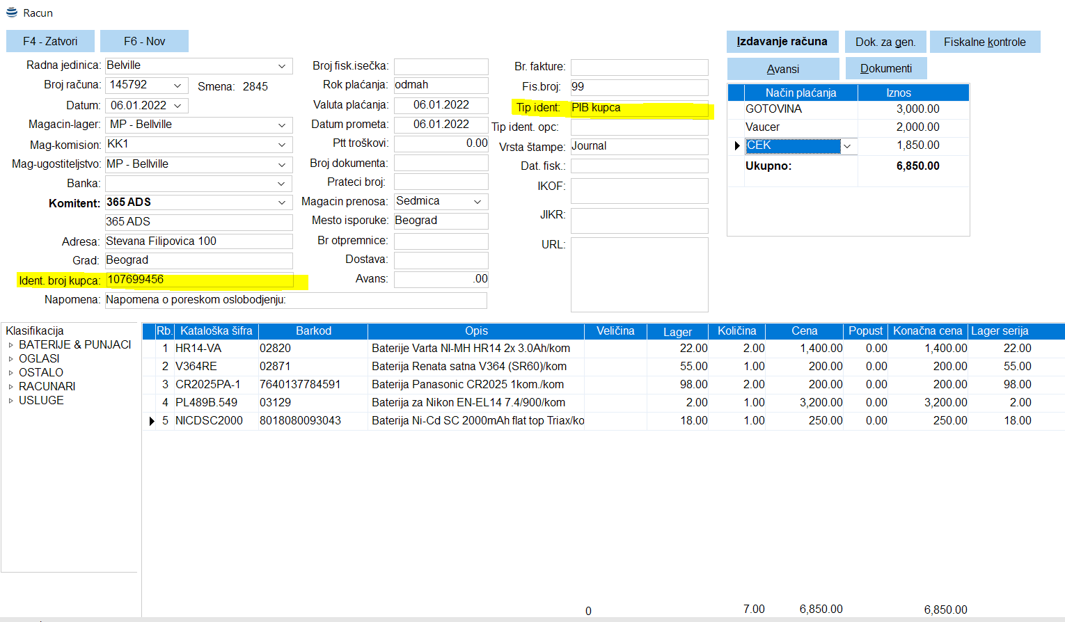 Izdavanje računa sa identifikacijom kupca