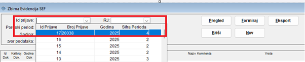 Da bi ste uradili korekciju zbirne evidencije potrebno je da u modulu Knjigovodstvo/ Poreska evidencija/ Zbirna evidencija SEF u polju Id prijava izaberete zbirnu evidenciju koju ste vec poslali na SEF, zatim klik na dugme Pregled, pa potom na dugme Formiraj.