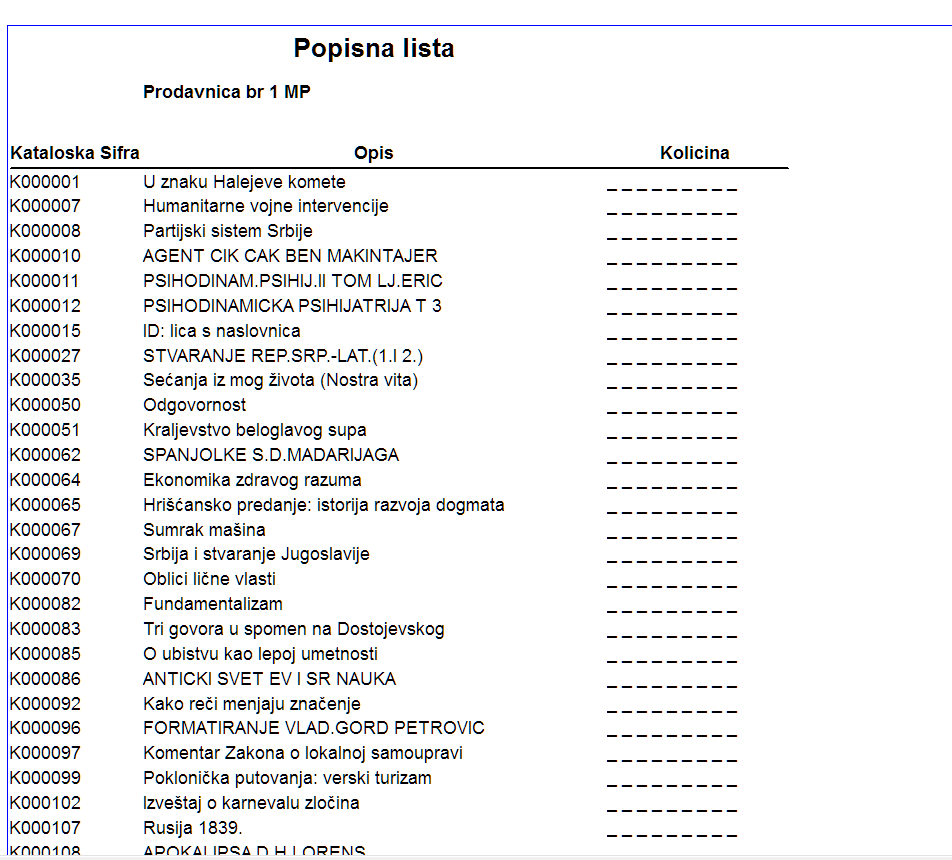 Kreiranje i štampanje popisnih lista
