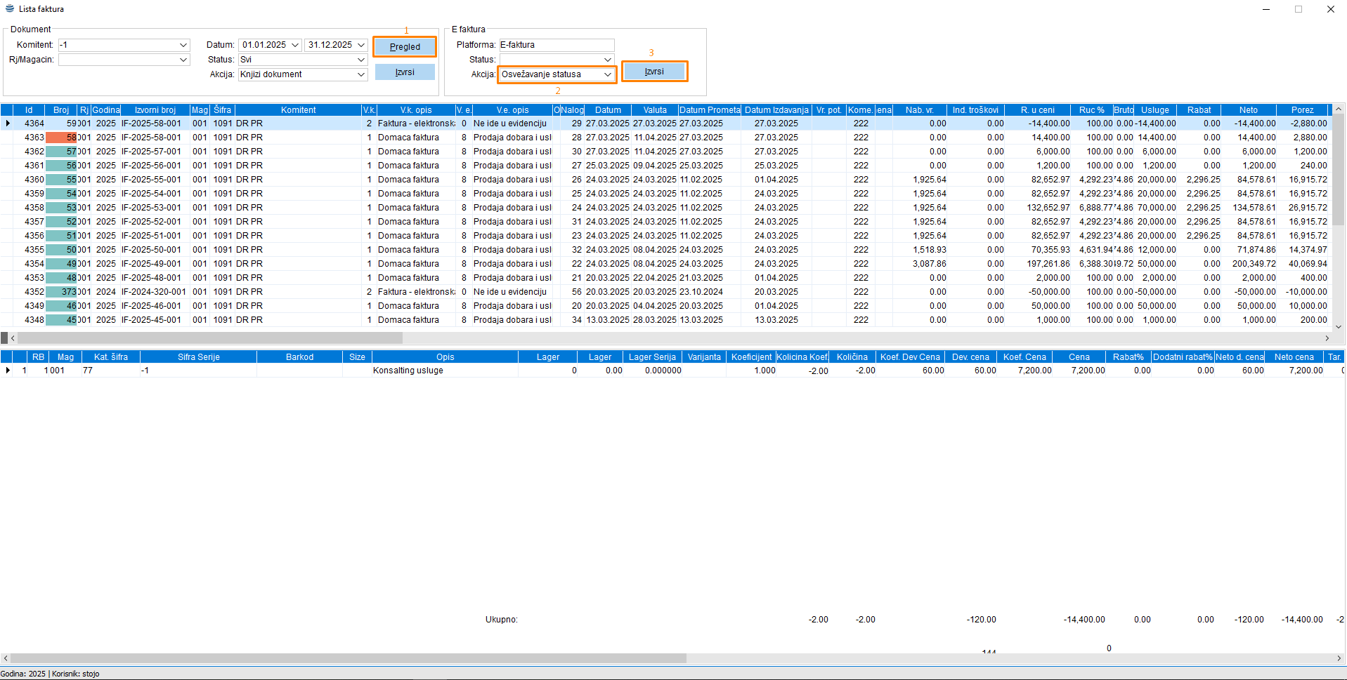 - Kliknite na dugme "Izvrši" u okviru zaglavlja E faktura (slika 1),