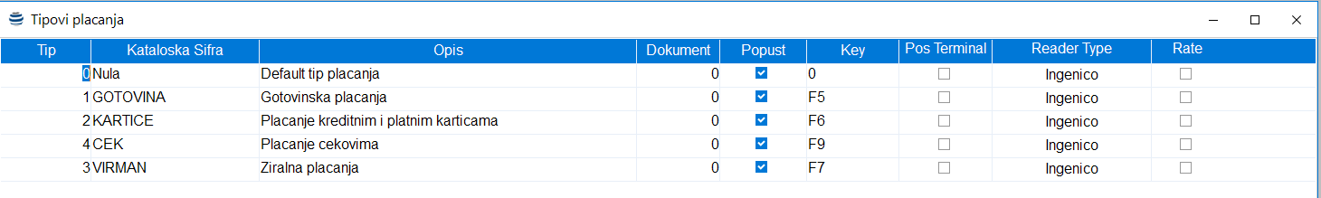 - Key – shortcut dugme na modul SVera POS koji će biti prečica preko tastature za izbor plaćanja