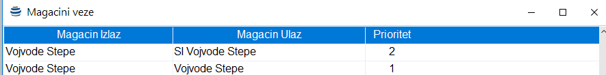 - Polje prioritet određuje prioritet u vezi tj po kom redosledu će softver vršiti pretragu artikala u okviru svih povezanih magacinamagacina.