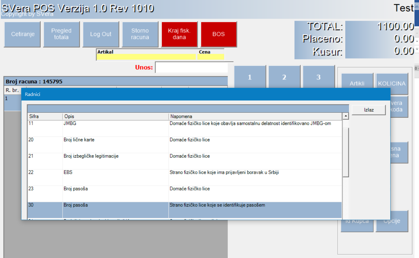 Kod aktiviranja opcije ID kupca biramo opciju 30 broj Pasoša