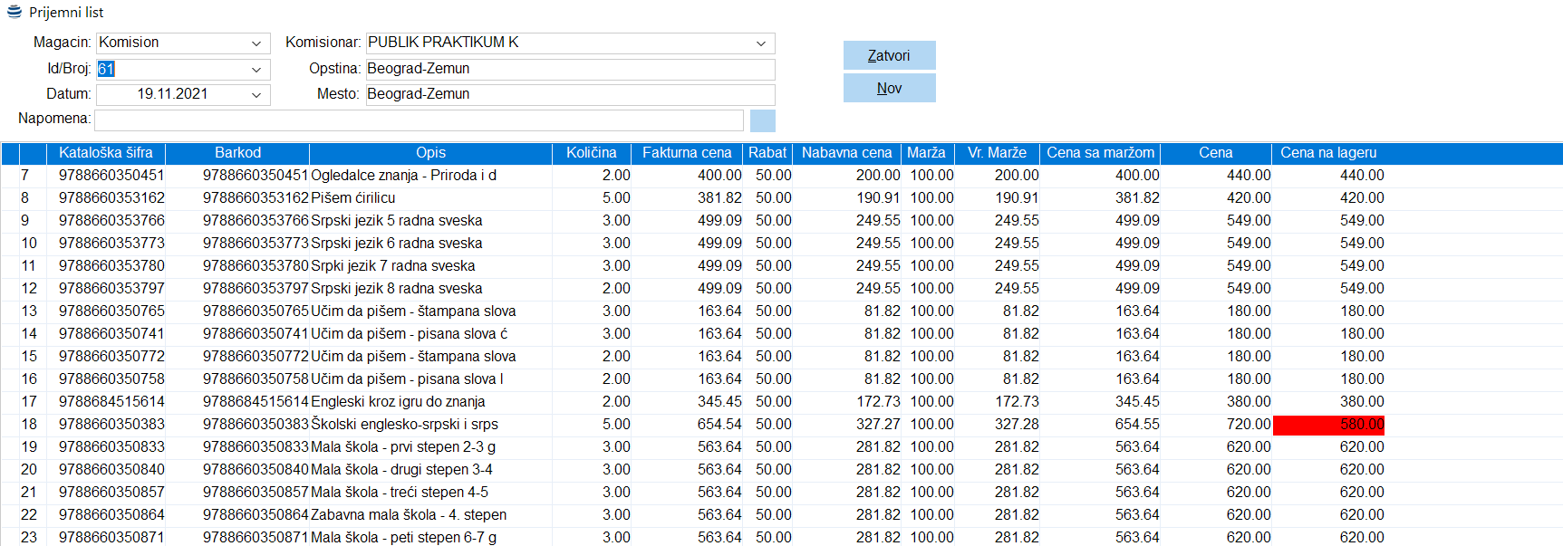 - Mp prodajna cena.